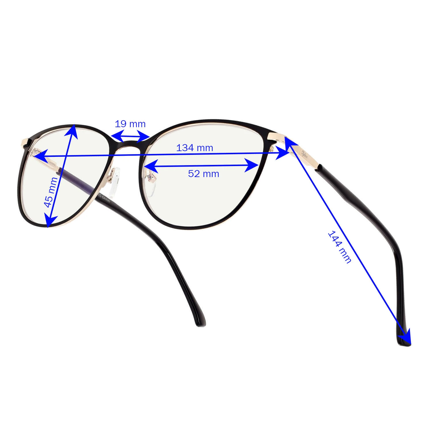 szerokość między zausznikami (mierzona przy zawiasach) (cm): 13.4 max wysokość soczewki razem z oprawką (cm): 4.5