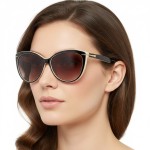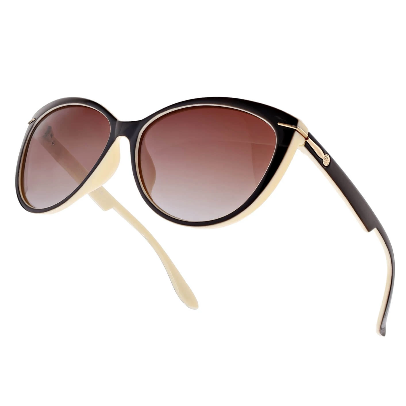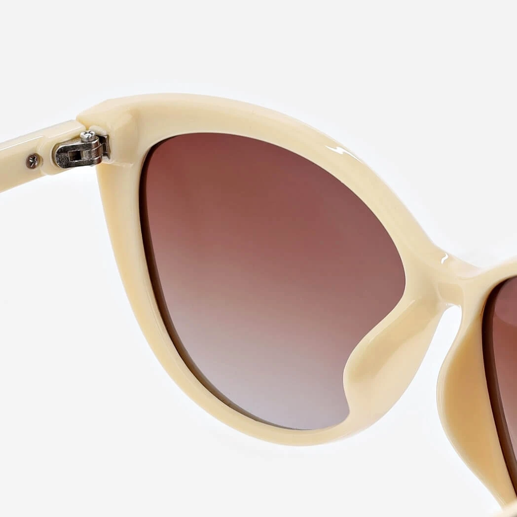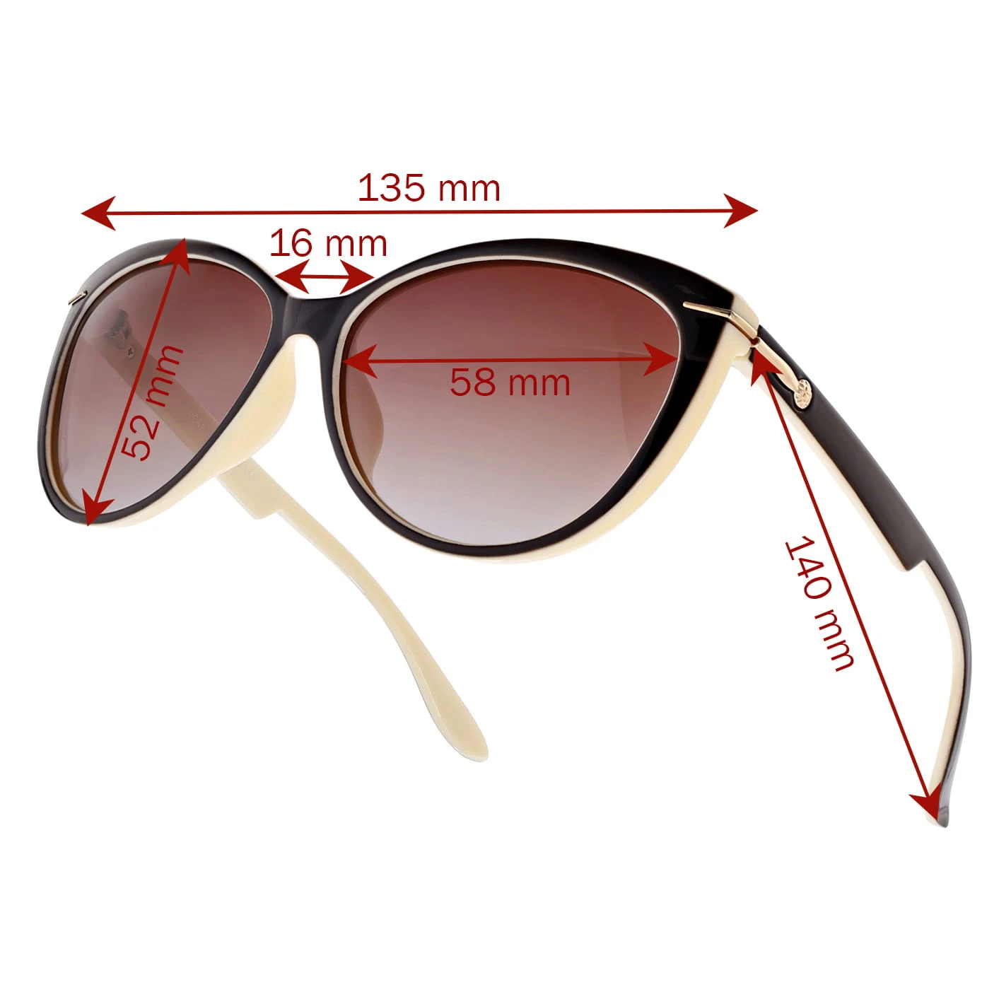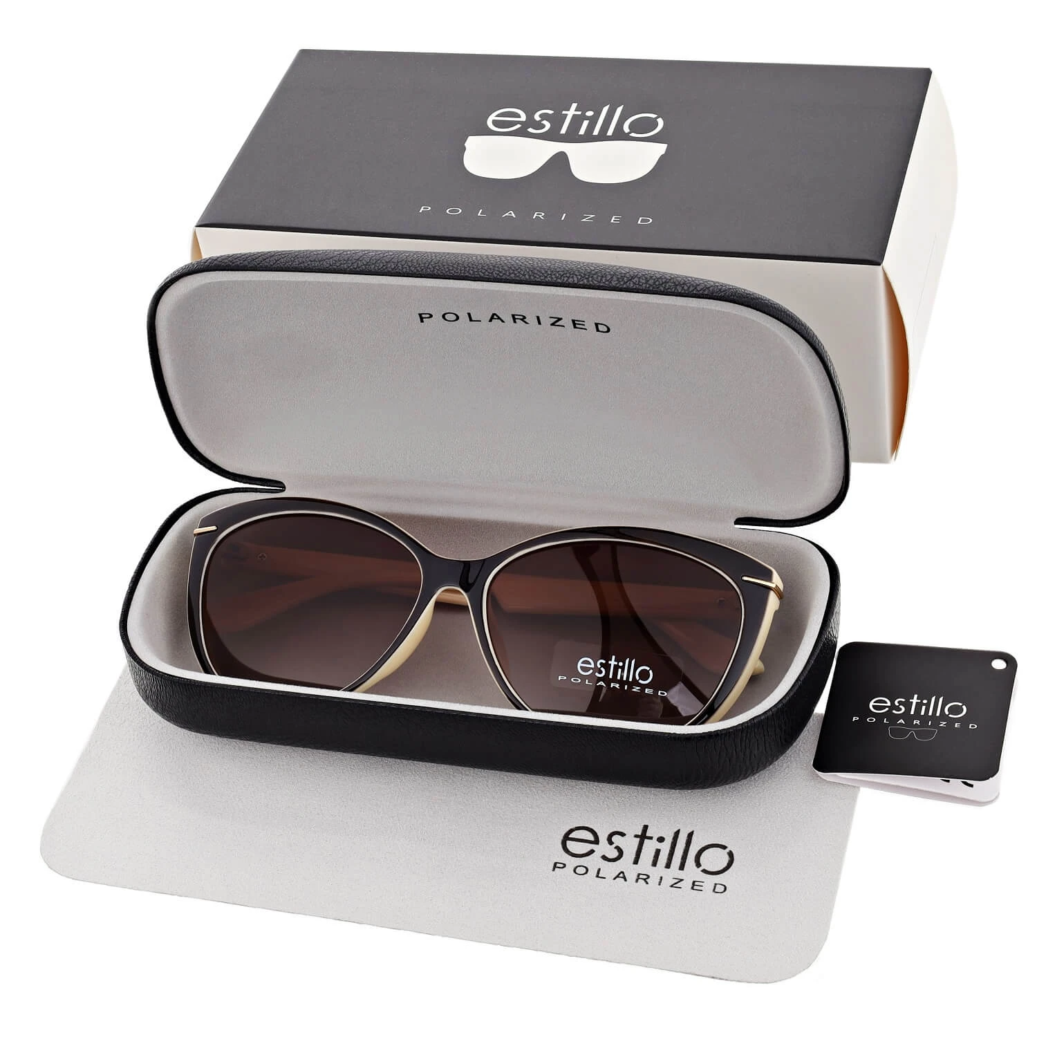 Okulary przeciwsłoneczne polaryzacyjne dla kobiet koloru kremowo-brązowego, kształtu kocie oczy w komplecie z zestawem markowych akcesoriów Estillo