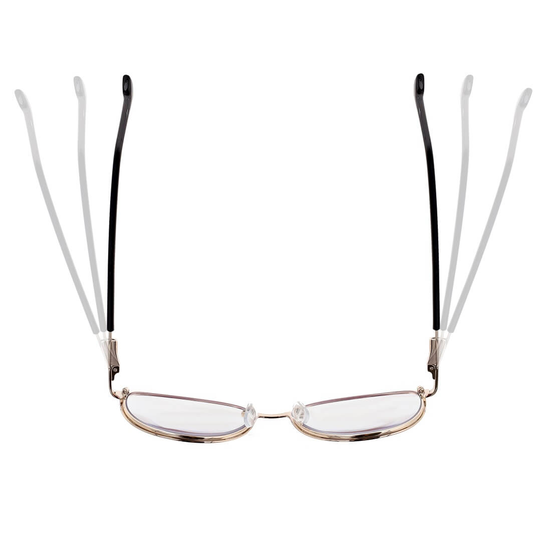 ➤ Lekka oprawka stalowa w kształcie kociego oka w kolorze czarno-złotym z teleskopami w zausznikach